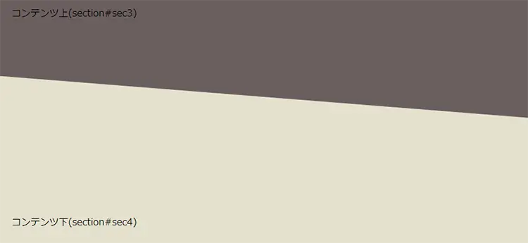 上下を斜めに区切りたい場合は、3つセクションを用意して、中央の上下を切り抜くか、上のセクションと下のセクションを切り抜けばOKです。